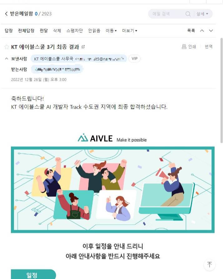 KT AIVLE School에 합격했었다! 정말로 이메일을 열어볼 때, 대학교 합격했던 그 기억만큼 짜릿했었다. ㅎㅎ