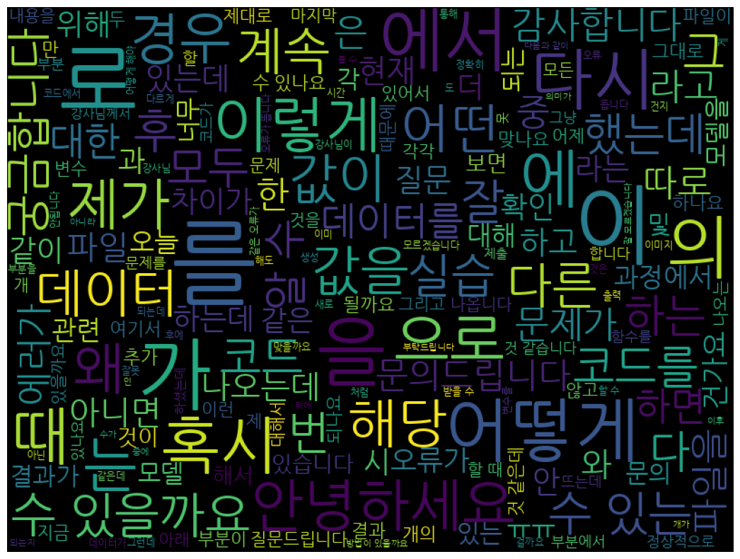 일단 텍스트 데이터에 대한 이해와 분석을 진행했습니다. 그래서 nltk, wordcloud 등을 진행했습니다.
