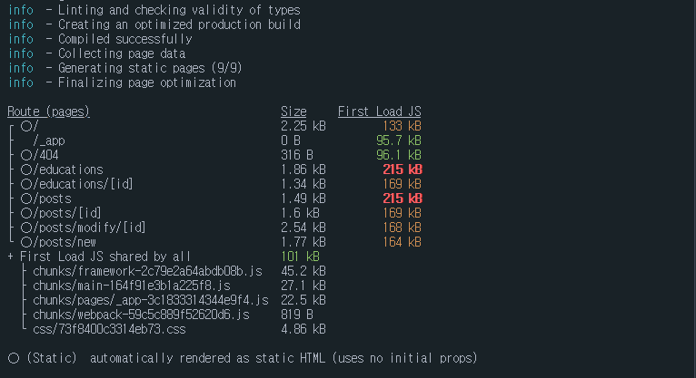 현재 무한스크롤을 보여주는 educations와 posts의 JS 파일이 용량이 큰 것으로 표시가 됩니다. 이를 해결하기 위해서 여러 가지 최적화를 알아보고 이 게시글에 정리합니다.