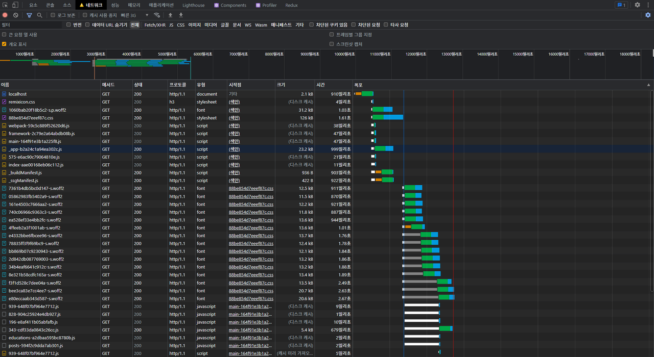 favicon을 제외하고 5초가량 걸리며, 폰트의 경우에는 2초 후반대로 매우 유의미한 결과를 얻을 수 있었습니다!