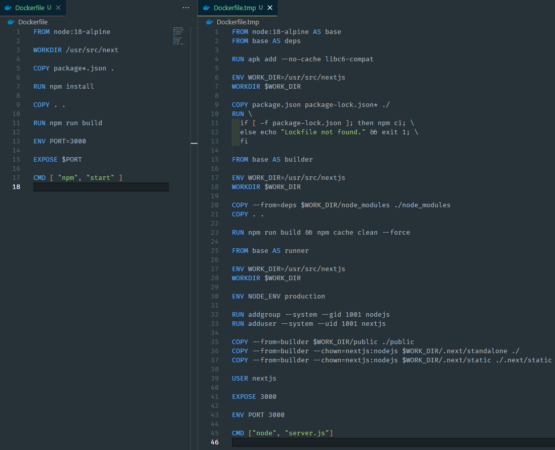 - standalone은 수동으로 static folder, public 디렉터리 복사 과정이 필요해서 COPY 추가
