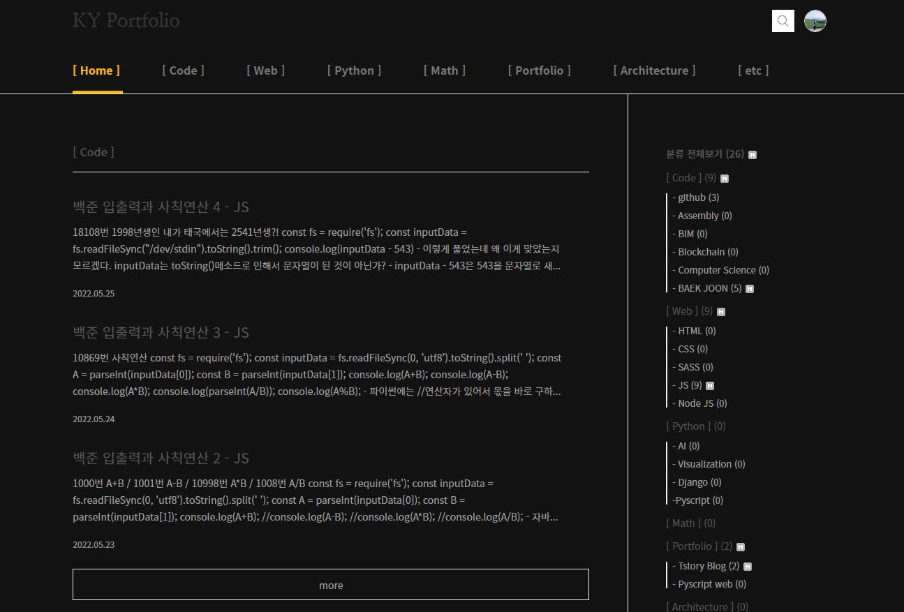 | 티스토리 블로그 코드 수정하기 - 1. 현재까지 한 것들 (0) | 2022.05.24 |