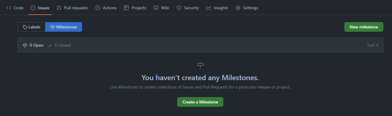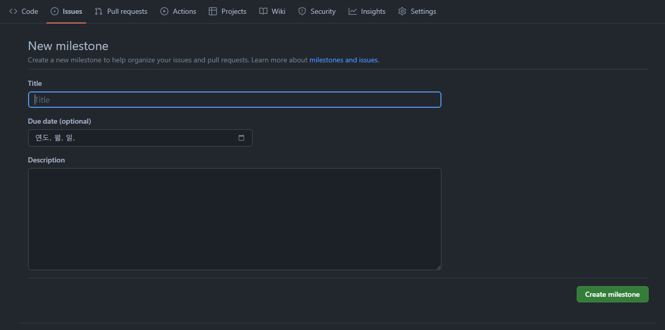 - 마일스톤 기능이 있다. 마일스톤은 이슈들을 모아서 일정관리를 할 수 있다.