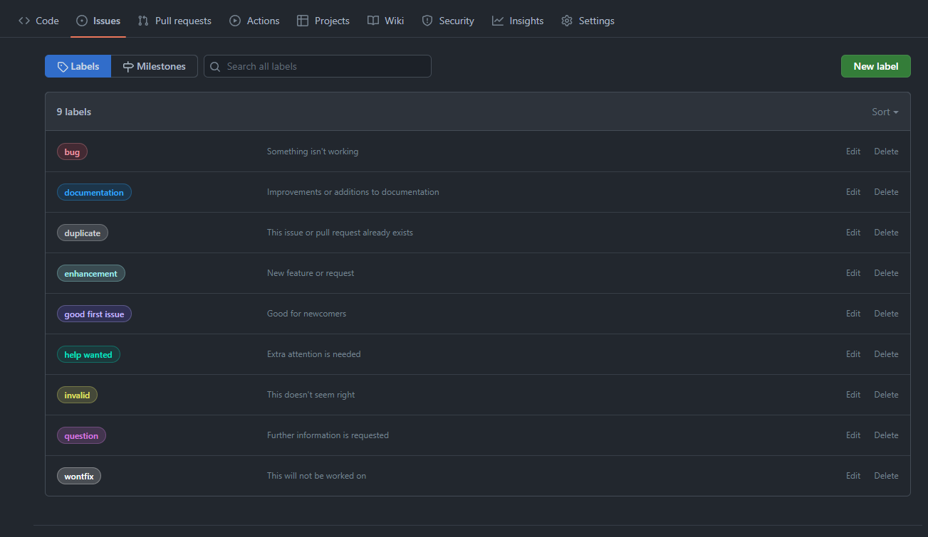 - 이슈 라벨을 생성할 수 있다. 이슈가 어떤 종류인지 구분하기 편해보인다. 라벨을 추가 삭제도 가능하다.