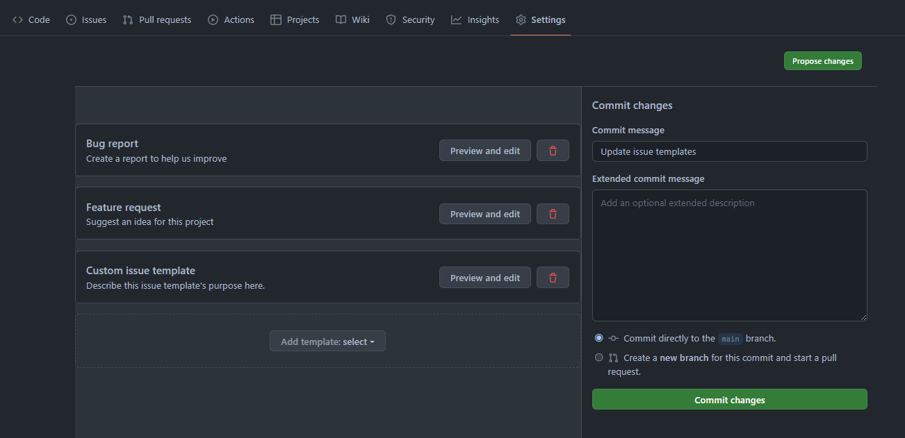 - 찾아 보니 issue template를 통해서 업무의 능률을 높히는 것을 볼 수 있었다.