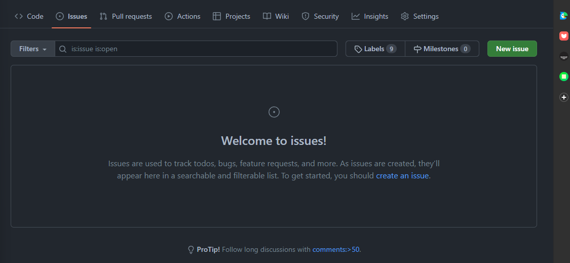 - 이슈의 생성, 닫기, 삭제가 가능하며.. 히스토리들을 봐야 할 때가 있으니 삭제 하지않고 기록으로 남기자.