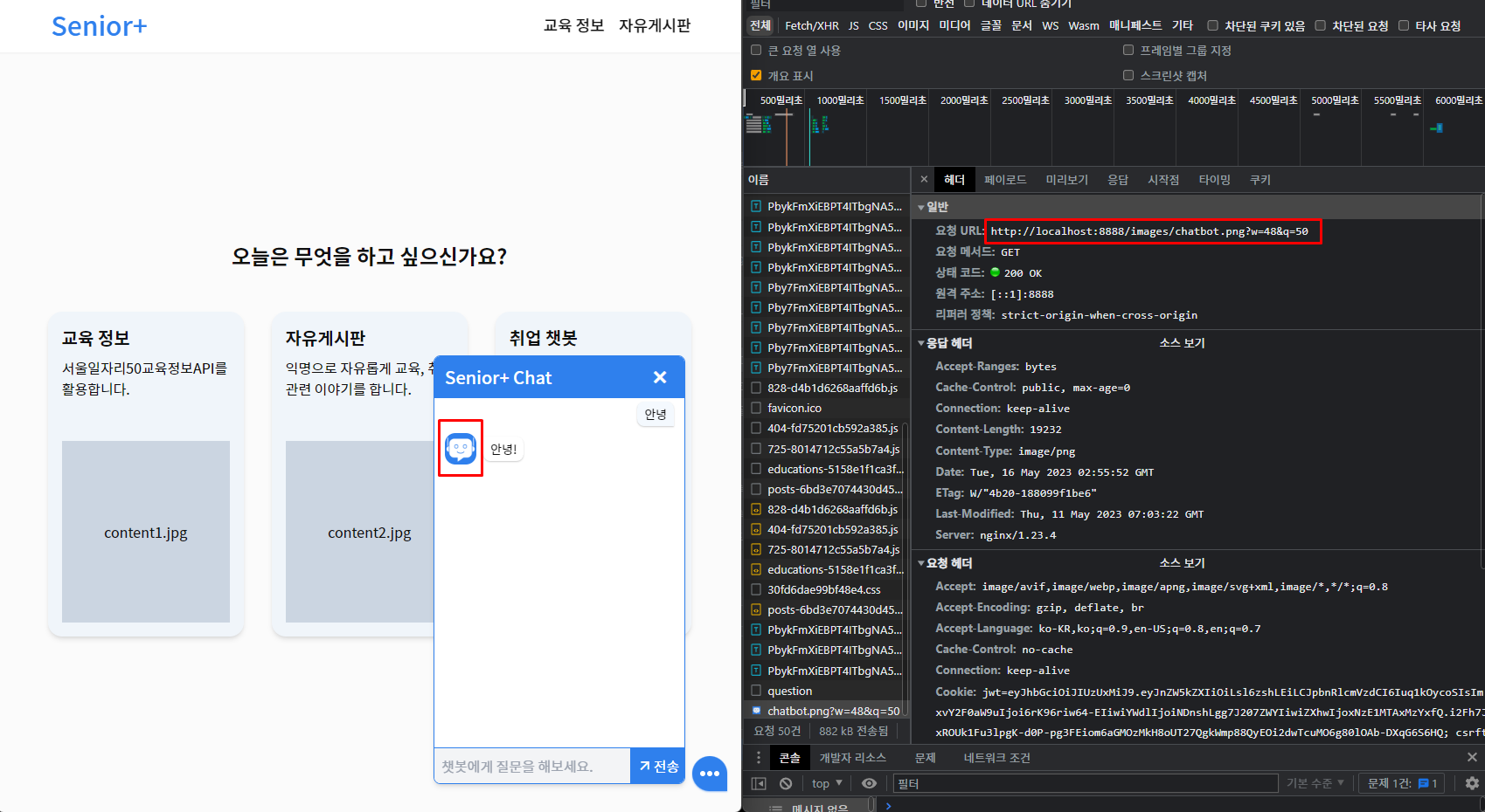 챗봇의 프로필 이미지가 보이지 않아서 왜 안되는지 원인을 찾아보기 시작했습니다. 일단 네트워크탭에서 보니 경로가 /_next/image로 되고, 그 뒤로 src에 설저해준 경로가 붙는 것을 보고 어떻게 하면 저 경로를 바꿔줄 수 있을지 고민했습니다.